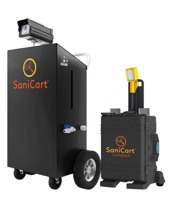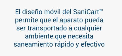 El Sanicart™ está diseñado para disinfectar espacios controlados y vehículos de transporte efectivamente y con eficiencia. Su diseño sencillo